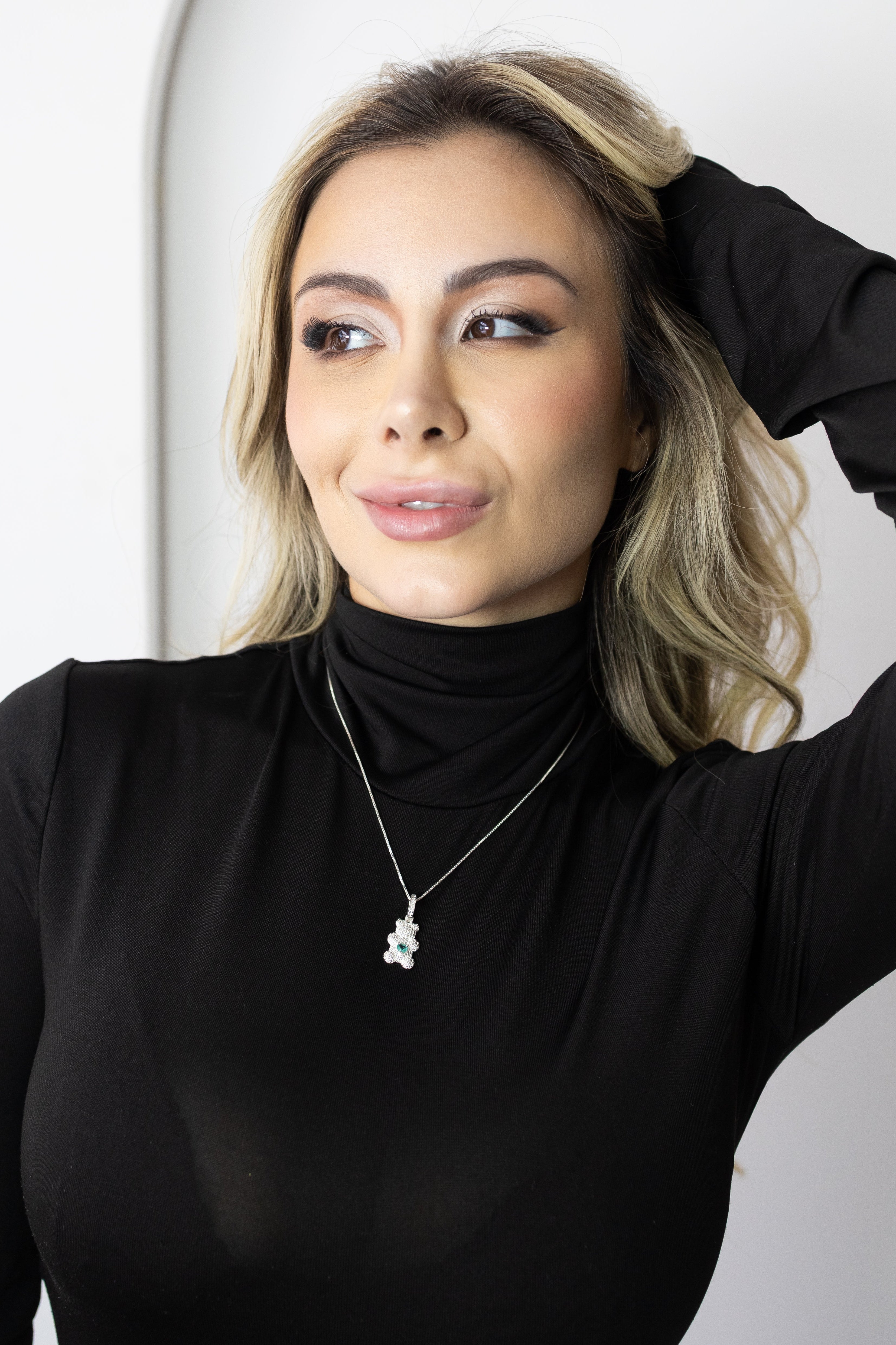 Descubra a combinação perfeita entre brilho, delicadeza e significado com o Colar de Urso todo cravejado em zircônias, agora com um exclusivo ponto de luz verde que traz ainda mais charme à peça. Confeccionado em Prata 925 legítima, este colar conta com um pingente de urso totalmente cravejado com zircônias brilhantes e um detalhe central com zircônia verde, simbolizando equilíbrio e renovação. Acompanha uma corrente veneziana, delicada e confortável, ideal para quem busca elegância e estilo em uma joia versátil e sofisticada.