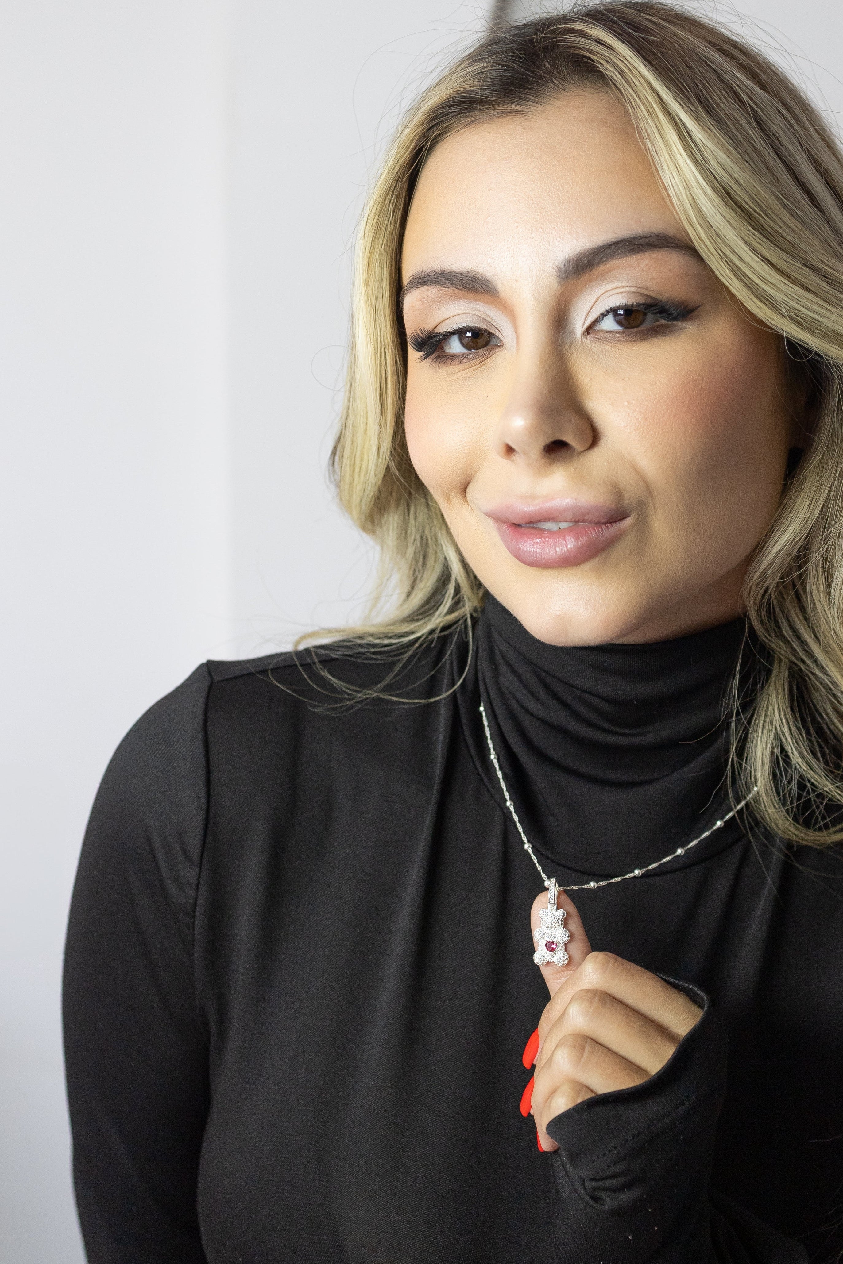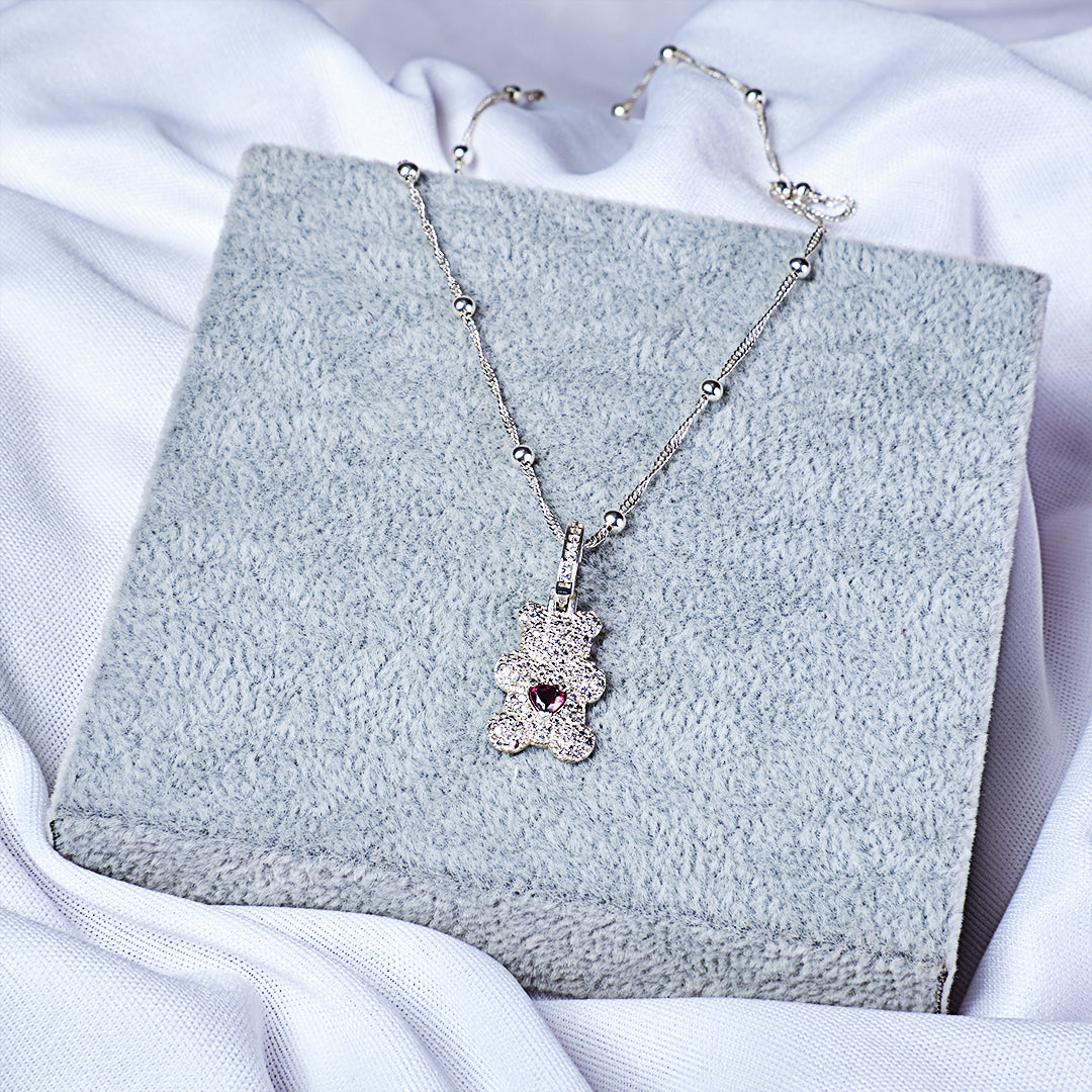 Delicado, elegante e cheio de significado, o Colar de Urso cravejado em zircônias com ponto de luz vermelho é uma joia que transmite carinho, força e sofisticação. Produzido em Prata 925 legítima, ele conta com um pingente de urso totalmente coberto por micro zircônias brilhantes e um destaque especial: uma zircônia vermelha central, que simboliza amor, paixão e proteção. Acompanha uma corrente veneziana de bolinha, que complementa perfeitamente o design encantador e moderno da peça. Ideal para presentear ou para compor um look marcante e delicado ao mesmo tempo.